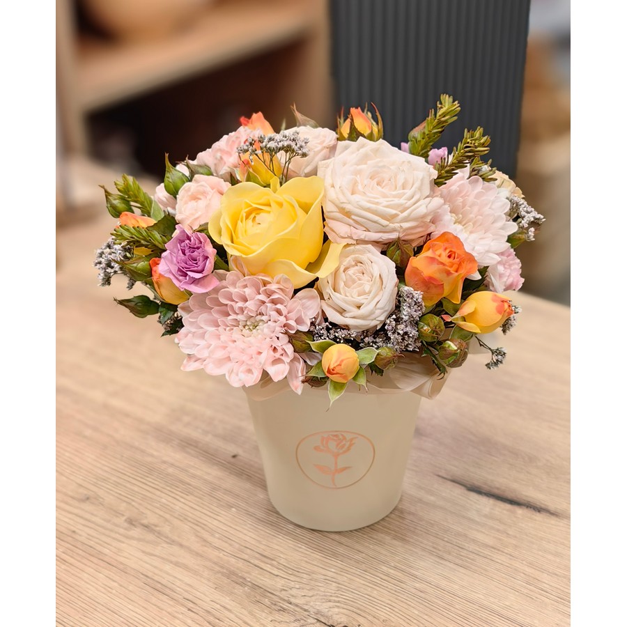 Представляем вашему вниманию уникальную цветочную композицию, которая только что покинула руки наших талантливых флористов. Каждый цветок в этом букете — произведение искусства, созданное с любовью и вниманием к мельчайшим деталям.