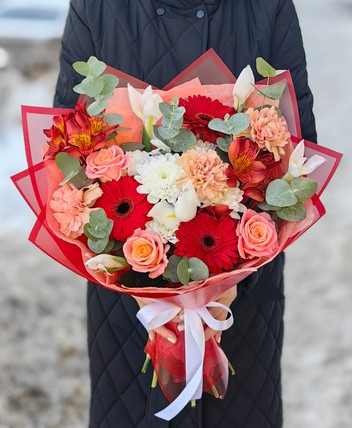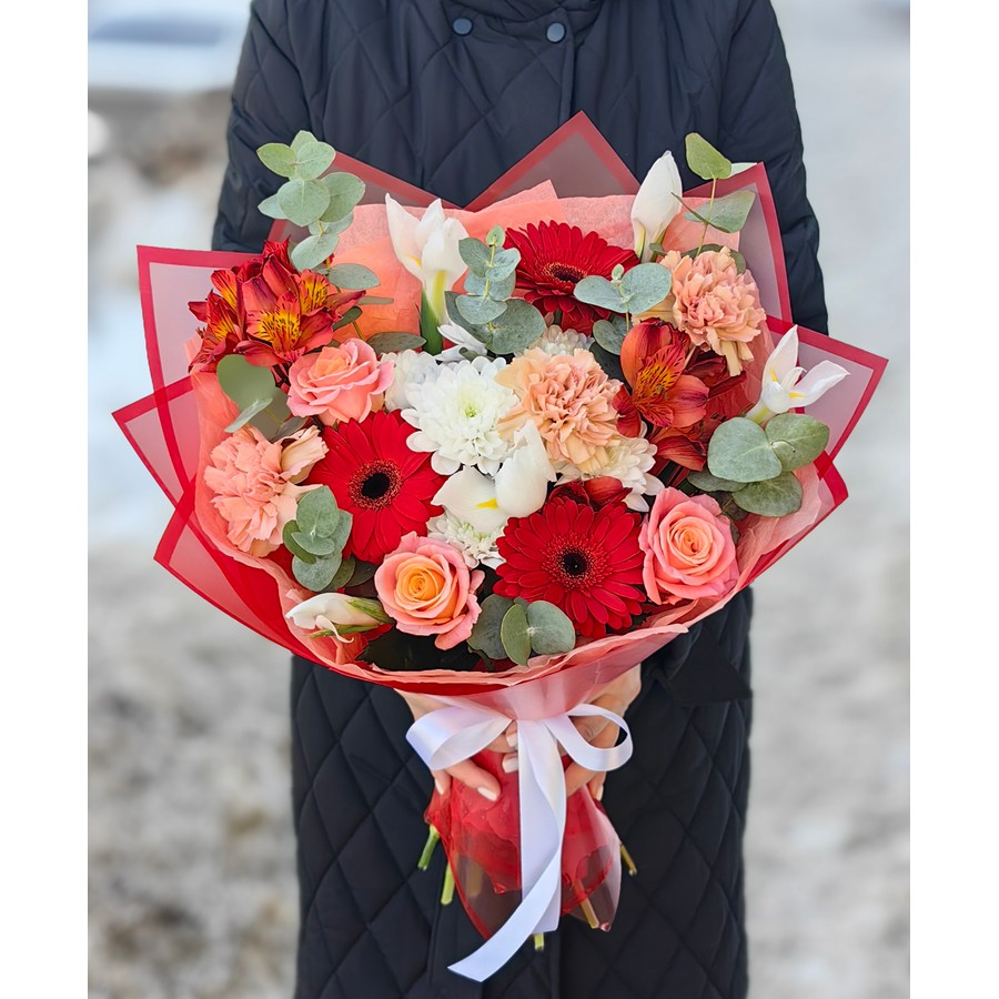 Этот букет — настоящее произведение флористического искусства, способное передать самые искренние чувства и эмоции. Он станет идеальным подарком для любого случая или прекрасным способом выразить свою любовь и заботу.