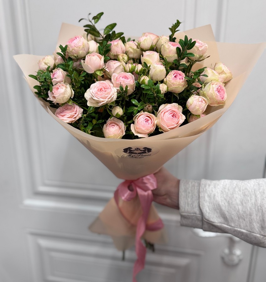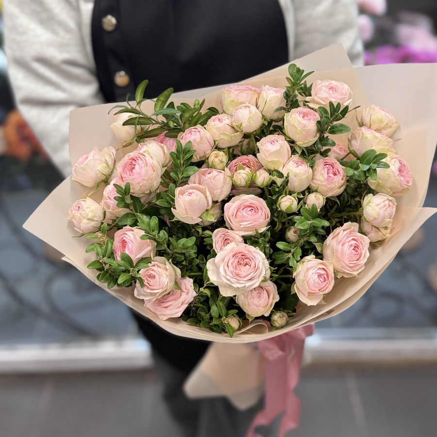 Кустовые пионовидные розы в крафте